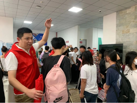 縱使上午艷陽高照,中午起又風(fēng)雨交加,志愿者們熱情不減,接過行囊,一件接一件,有序高效穿梭在宿舍樓之間,快速引導(dǎo)至對(duì)應(yīng)樓層,并向萌新們囑咐注意事項(xiàng),協(xié)助新生盡快適應(yīng)新環(huán)境,以心迎新,呈現(xiàn)出踏實(shí)奮進(jìn)、帶頭示范的黨員志愿者的精神風(fēng)貌,提高了迎新工作的服務(wù)質(zhì)量和效率,充分發(fā)揚(yáng)志愿者服務(wù)精神。