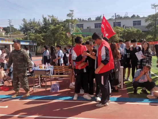 在運動場的每一個角落都能見到志愿者的身影,處處活躍著最美“志愿紅”。志愿者們始終堅守崗位,為賽道上的運動員們吶喊助威,拍照記錄精彩瞬間;為運動員遞送紙巾、飲用水等物資,攙扶下賽場的運動員等等,提供各種必要的幫助和支持。他們踐行著“奉獻、友愛、互助、進步”的志愿者精神,用真心、真情服務(wù)全場,用行動踐行著黨員團員的責任和擔當,他們的辛勤工作得到了全體師生的高度好評。