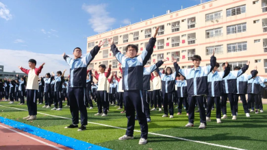 “稍息,立正,齊步走!”在各班領(lǐng)操員的帶領(lǐng)下,同學(xué)們身著校服,精神飽滿,踏著整齊的步伐走到指定位置。伴隨著動感十足的節(jié)奏,同學(xué)們動作靈活,如雛鷹展翅,熱情奔放,似猛虎下山,虎虎生威,如凌波踏浪,又似蛟龍出水,震撼人心,給人以美的享受。整體動作整齊劃一,表演精彩,場面壯觀。