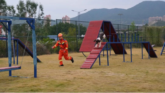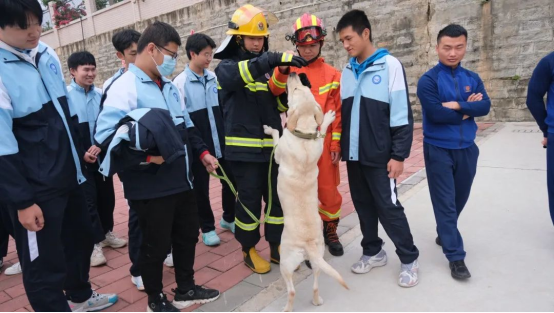 消防站工作人員向師生們?cè)敿?xì)介紹了搜救犬訓(xùn)練基地的基本情況,特別介紹了消防搜救犬,包括種類(lèi)要求、日常訓(xùn)練及其生活環(huán)境等。它們是消防員的“無(wú)言戰(zhàn)友”,救援現(xiàn)場(chǎng)的“特種兵”,是有特異功能的搜救英雄。隨后師生們觀摩了搜救犬的障礙、服從訓(xùn)練,走鋼絲、鉆洞、跳躍等,敏捷的身姿贏得師生們的一陣陣喝彩。最后,在訓(xùn)導(dǎo)員帶領(lǐng)下,與搜救犬進(jìn)行友好互動(dòng),親身體驗(yàn)了搜救犬訓(xùn)導(dǎo)員與搜救犬的工作日常。