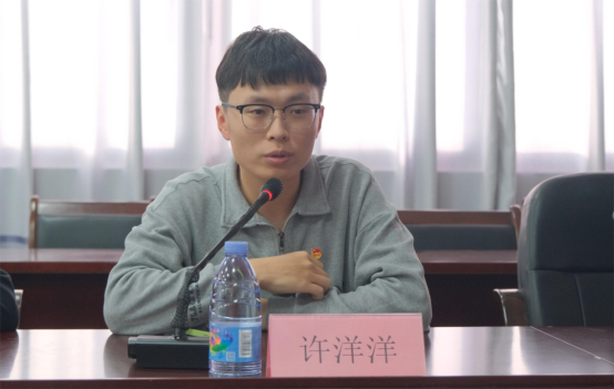 由團支部副書記王金陽匯報本支部開展團員和青年主題教育情況,并結合團支部工作和個人實際交流匯報團支部一年來在開展的團日活動、青年大學習、收聽收看黨的重要會議、習近平總書記發(fā)表的重要講話等學習情況,重點就本學期開展的“團員和青年”主題教育四個專題學習和組織生活會準備情況進行匯報。
