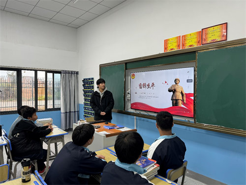 全體團(tuán)員在二樓會議室集中學(xué)習(xí),其余學(xué)生在各班教室由班主任按團(tuán)支部統(tǒng)一下發(fā)的材料組織學(xué)習(xí)。團(tuán)支部輔導(dǎo)員蔡伯恩老師及各班主任進(jìn)行了雷鋒故事的宣講,深情講述雷鋒昔日的故事,帶領(lǐng)同學(xué)們感受雷鋒那顆“甘做一顆螺絲釘”的昭昭赤子之心,品悟當(dāng)代雷鋒事跡,體會新時代雷鋒精神,并組織同學(xué)們觀看了雷鋒同志的紀(jì)錄片,追憶雷鋒,讓同學(xué)們更加真切地體會到學(xué)習(xí)雷鋒精神的含義。