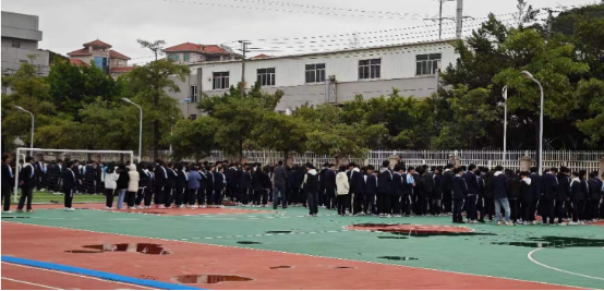 演練時(shí),當(dāng)拉響應(yīng)急警報(bào)鈴,廣播同步到位,同學(xué)們?cè)诎嘀魅?、老師的組織下,在樓梯疏散教師的精心指導(dǎo)下,利用手、紙巾等途徑捂住口鼻,彎腰行進(jìn)。最后,全校師生迅速撤離到操場(chǎng)上。整個(gè)演練過程在緊張、有序的氛圍下進(jìn)行,全校師生高度重視,按計(jì)劃方案行動(dòng),達(dá)到了預(yù)期效果。
