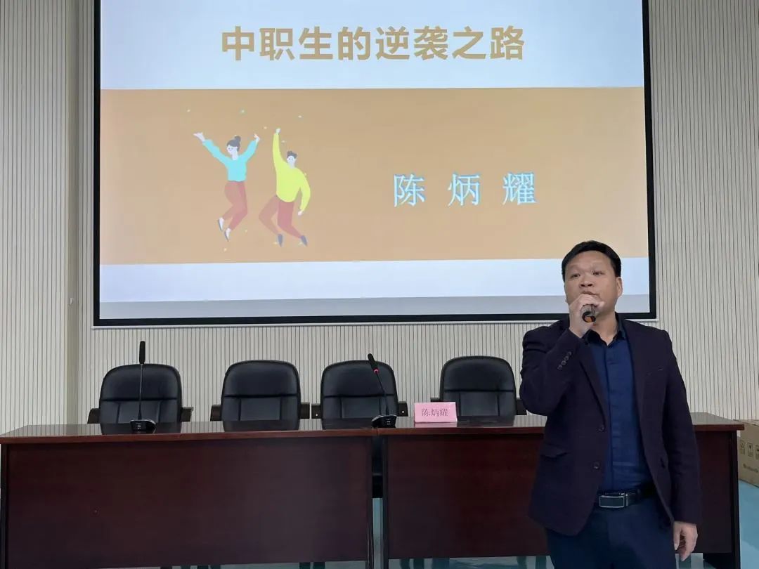 陳炳耀副校長以“這是不是現(xiàn)在的你?”開篇,指出中職生可能存在的現(xiàn)狀:中考失利、沉迷游戲、生活迷茫、沒有信心、缺乏動力,希望云揚學(xué)子充分認(rèn)識自己,杜絕不良習(xí)慣。隨后,陳副校長通過邵思程、曾正超、梁智濱等中職生逆襲的故事鼓勵云揚學(xué)子要明確目標(biāo),自信自強,努力發(fā)光。最后,他還以張煥騰從中職生升學(xué)到研究生的事例分析了最新的《職業(yè)教育法》和職業(yè)教育的廣闊前景,云揚學(xué)子深受啟發(fā),信心倍增。