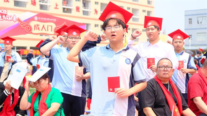 滾滾而來的年華,迎來永遠(yuǎn)熱烈的十八歲。站在十八歲的起點(diǎn),全體學(xué)生面向國(guó)旗、手持憲法、莊嚴(yán)宣誓。誓言鏗鏘有力,志向高遠(yuǎn)無窮。