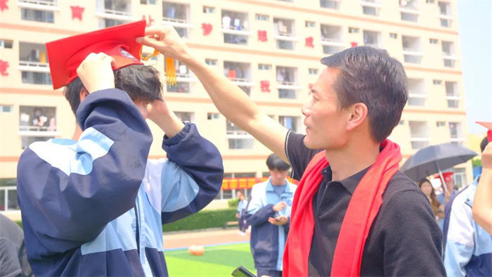 君子始冠,必祝成功;加冠之禮,以示成人。隨著主持人鏗鏘的加冠詞,與會(huì)領(lǐng)導(dǎo)和家長(zhǎng)為云揚(yáng)學(xué)子戴上成人帽、撥穗、正冠,贈(zèng)予他們一份最最神圣的禮物——《中華人民共和國(guó)憲法》,提醒云揚(yáng)學(xué)子從這一刻開始將身負(fù)責(zé)任,擔(dān)當(dāng)使命。