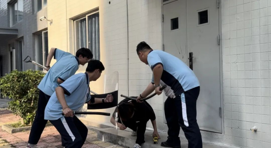 演練伊始,按照預(yù)定方案,模擬不法分子闖入校園這一緊急情況。校園保安迅速出動,與“歹徒”展開周旋,同時上報值班人員;校園防暴隊聞令迅速出動,按照平時訓(xùn)練流程對暴恐分子開展圍堵、抓捕;各安全員迅速組織學(xué)生撤離到安全區(qū)域,屈伸躲藏,緊閉門窗;心理隊對驚恐學(xué)生進行心理安撫。演練過程中,師生嚴(yán)格遵守現(xiàn)場指令,有序疏散,展現(xiàn)出良好的應(yīng)急反應(yīng)能力。演練結(jié)束后,學(xué)工處組織對演練中出現(xiàn)的問題進行了總結(jié)反思,結(jié)合實際對方案預(yù)案進一步修訂完善。