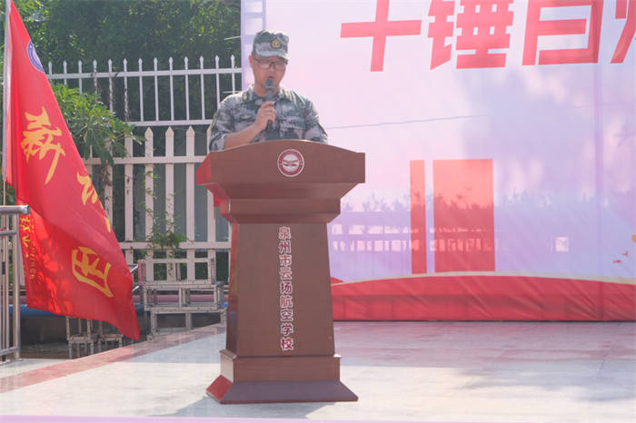 軍訓(xùn)團(tuán)劉超團(tuán)長(zhǎng)作動(dòng)員講話(huà),他表示全體教官將嚴(yán)格按照軍訓(xùn)計(jì)劃,科學(xué)施訓(xùn),文明施訓(xùn),確保軍訓(xùn)任務(wù)的圓滿(mǎn)完成。同時(shí),也希望同學(xué)們能夠積極配合,嚴(yán)格要求自己,認(rèn)真訓(xùn)練,發(fā)揚(yáng)不怕苦、不怕累的精神,培養(yǎng)集體榮譽(yù)感,以?xún)?yōu)異的成績(jī)完成本次軍訓(xùn)。