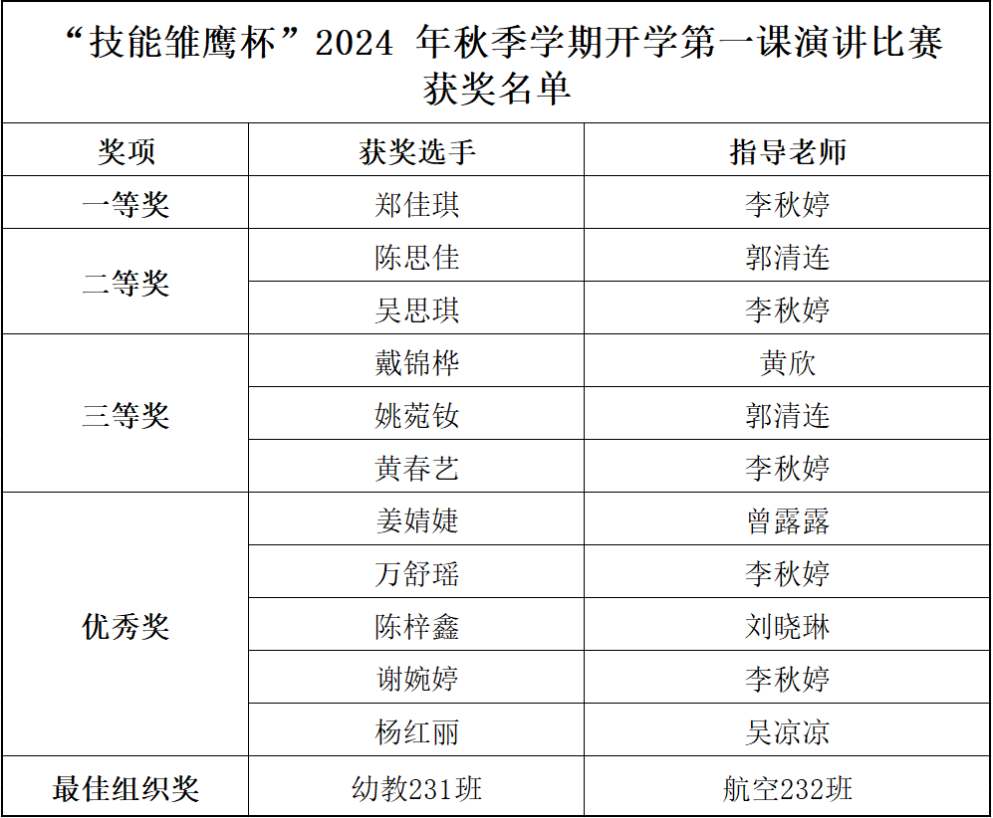 選手們的精彩表現(xiàn)贏得了現(xiàn)場觀眾的陣陣喝彩。評委團根據(jù)演講內(nèi)容、語言表達、形象風度等標準,進行了公正評判。最終,獲獎名單如下: