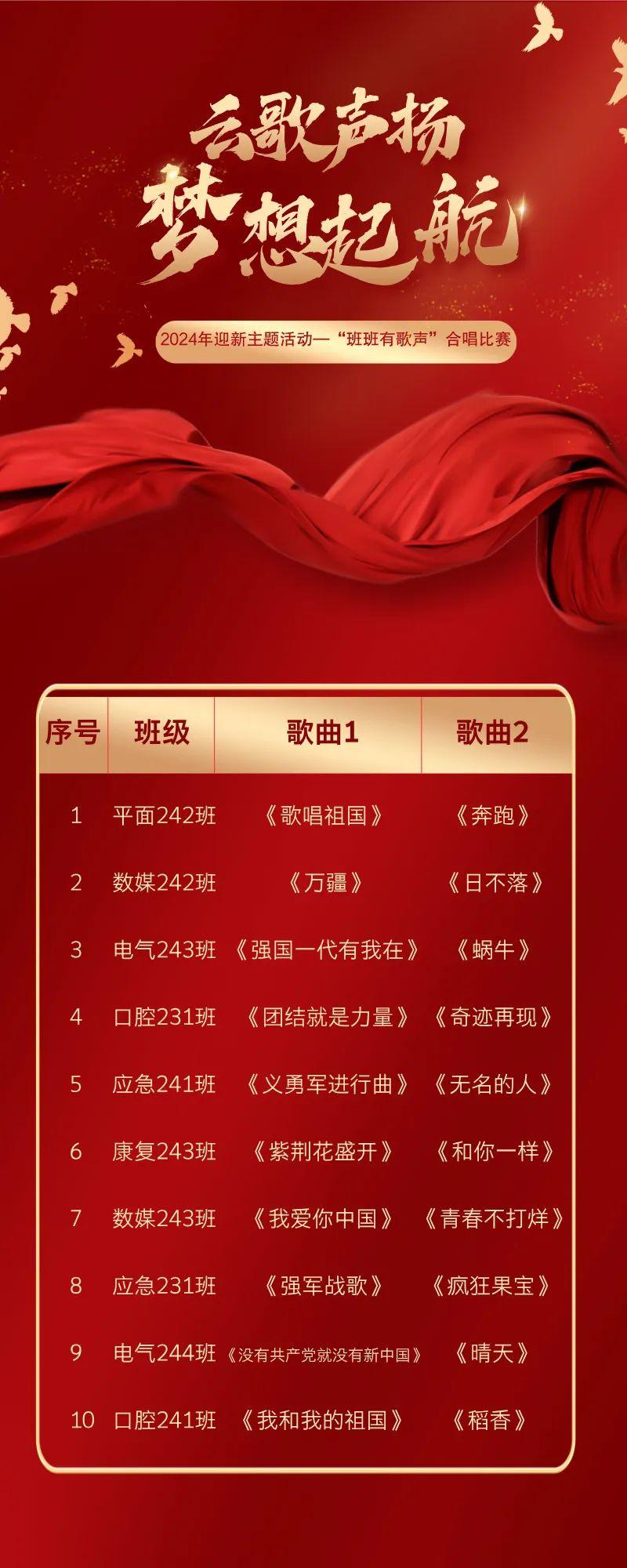 為熱烈慶祝中華人民共和國(guó)成立75周年,全面落實(shí)立德樹(shù)人根本任務(wù),激發(fā)師生愛(ài)國(guó)熱情,提升學(xué)生藝術(shù)素養(yǎng)和團(tuán)隊(duì)協(xié)作精神,同時(shí)展現(xiàn)新時(shí)代青年的風(fēng)采和活力,10月30日,我校在黃塘校區(qū)與港灣校區(qū)同時(shí)舉行了迎新主題活動(dòng)之“班班有歌聲”合唱比賽。各班合唱團(tuán)以飽滿的熱情和嘹亮的歌聲,傳遞出對(duì)祖國(guó)的無(wú)限熱愛(ài),展現(xiàn)了新時(shí)代學(xué)生昂揚(yáng)向上的精神風(fēng)貌。