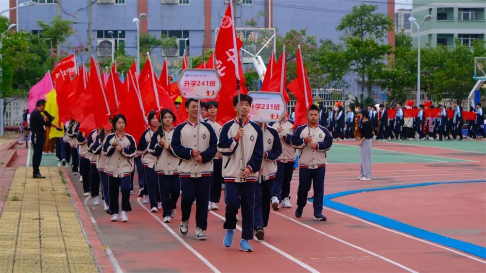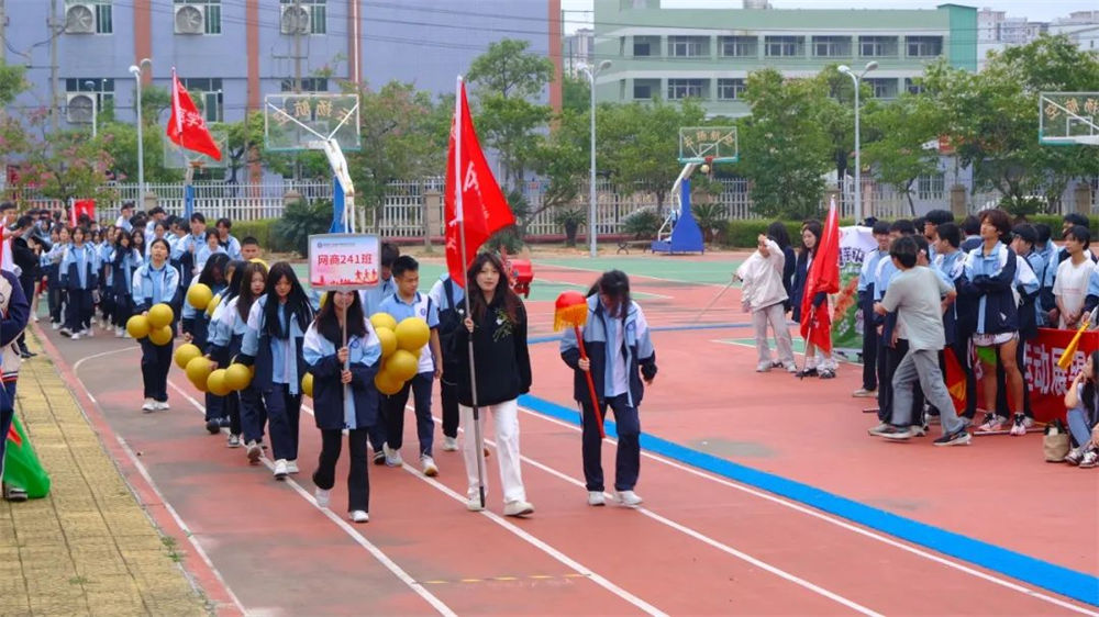 入場(chǎng)式上,各方陣精彩亮相。國(guó)旗護(hù)衛(wèi)隊(duì)英姿颯爽,手擎鮮艷的五星紅旗引領(lǐng)入場(chǎng)隊(duì)伍步入會(huì)場(chǎng),校旗護(hù)衛(wèi)隊(duì)緊隨其后,彰顯著云揚(yáng)航空職業(yè)技術(shù)學(xué)校的精神與榮耀。教師方陣精神昂揚(yáng),步履整齊。各個(gè)班級(jí)方陣驚艷出場(chǎng),他們口號(hào)響亮,步伐堅(jiān)定,充分展現(xiàn)出云揚(yáng)學(xué)子的青春活力與昂揚(yáng)斗志。