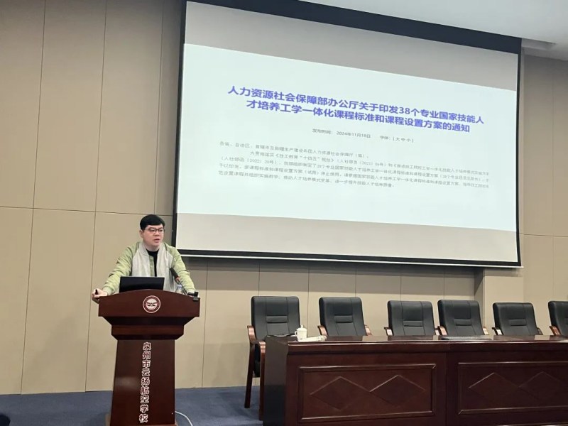 泉州技師學(xué)院教務(wù)科副科長吳文理,圍繞“工學(xué)一體化”建設(shè)這一核心主題,對工學(xué)一體化培養(yǎng)模式的主要任務(wù)、發(fā)展歷程、一體化課程改革的本質(zhì)與內(nèi)涵,以及工學(xué)一體化的理論與實踐等方面進行了全面而深入的剖析,并通過多個維度的細致講解,揭示了如何超越傳統(tǒng)教學(xué)的局限,實現(xiàn)理論與實踐的深度融合。通過吳科長的闡述,與會人員對工學(xué)一體化教學(xué)模式有了更為清晰和深刻的理解,對如何突破傳統(tǒng)教學(xué)的限制,達成理論與實踐的緊密結(jié)合有了深刻的認識。