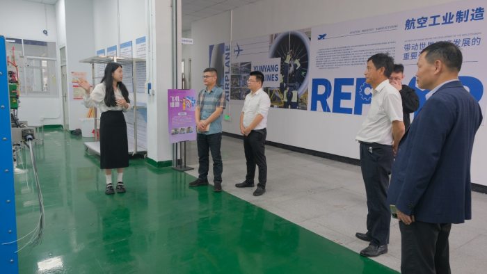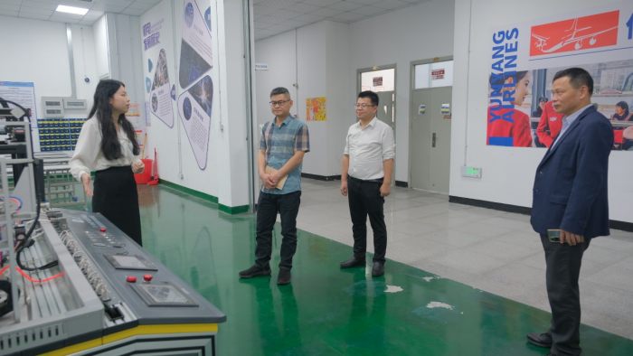 考察組一行深入我校教學(xué)綜合樓,重點(diǎn)走訪了飛機(jī)維修實(shí)訓(xùn)中心、無(wú)人機(jī)飛行演示區(qū)等特色教學(xué)場(chǎng)所,現(xiàn)場(chǎng)體驗(yàn)航空模擬設(shè)備,對(duì)我校先進(jìn)的實(shí)訓(xùn)設(shè)備和理實(shí)一體化培養(yǎng)模式表示高度認(rèn)可。