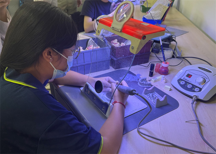 我校作為泉州市首個“產(chǎn)教融合應(yīng)用型特色校”,始終堅持“產(chǎn)教融合、校企合作”理念,積極創(chuàng)新技能人才培養(yǎng)模式。港灣校區(qū)口腔義齒制造專業(yè)與泉州超維口腔醫(yī)療公司合作開設(shè)“訂單班”人才培養(yǎng)模式,著力培養(yǎng)具備口腔修復(fù)技術(shù)及義齒數(shù)字化設(shè)計與制作能力的應(yīng)用型人才,畢業(yè)生可勝任牙體掃描、數(shù)字化建模、3D打印與數(shù)控精密加工等崗位。
