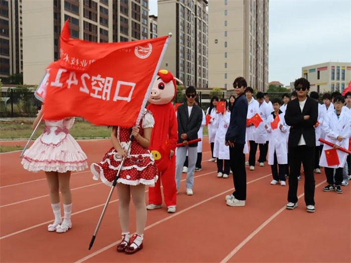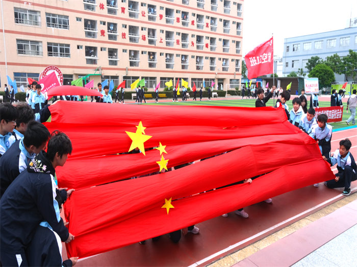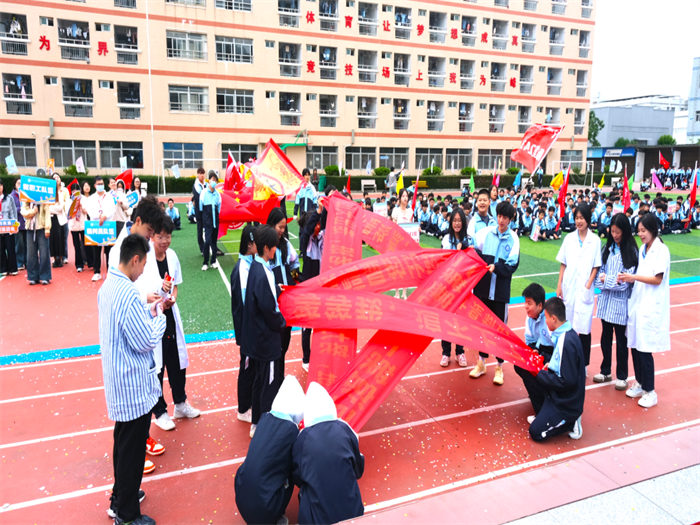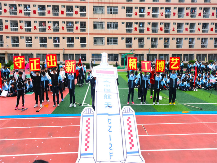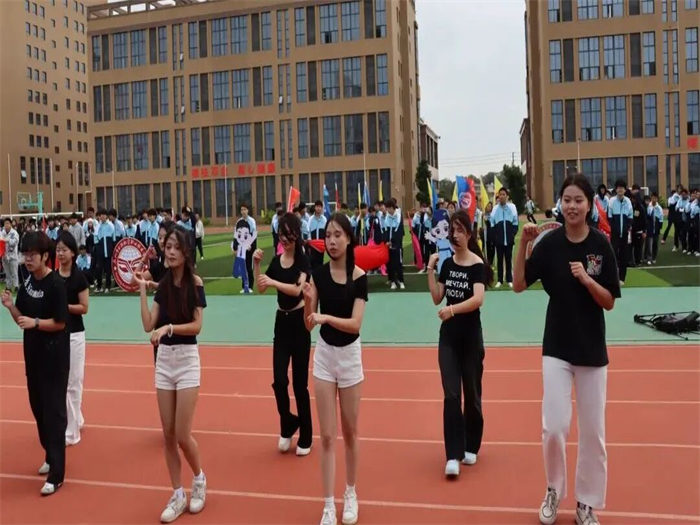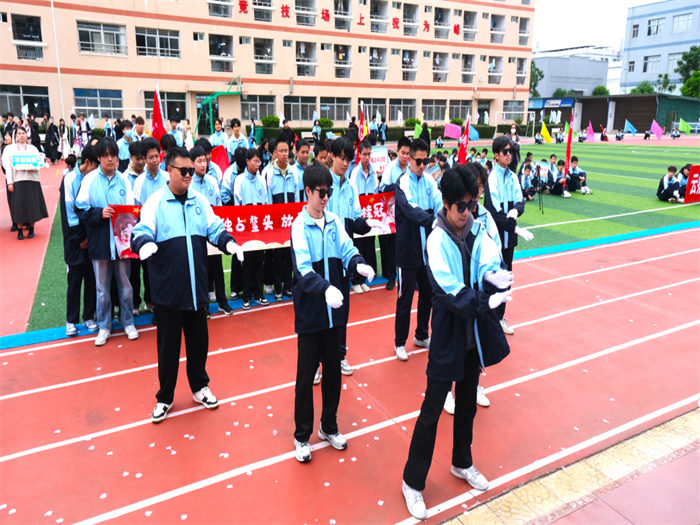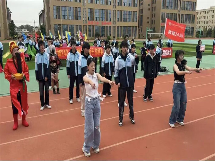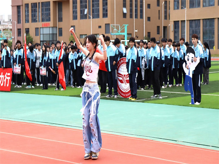 有的班級用紅布翻飛拼出五星紅旗,展現(xiàn)云揚學子的愛國情懷;有的班級組成火箭模型方陣高喊“科技強國”,讓未來感直接拉滿;有的班級結(jié)合專業(yè)特色,在班級用舞蹈跳出運動熱潮;有的班級舉著自制標語牌霸氣表白,將文明素養(yǎng)與運動熱情完美融合,成為賽場上一道亮麗的風景線。