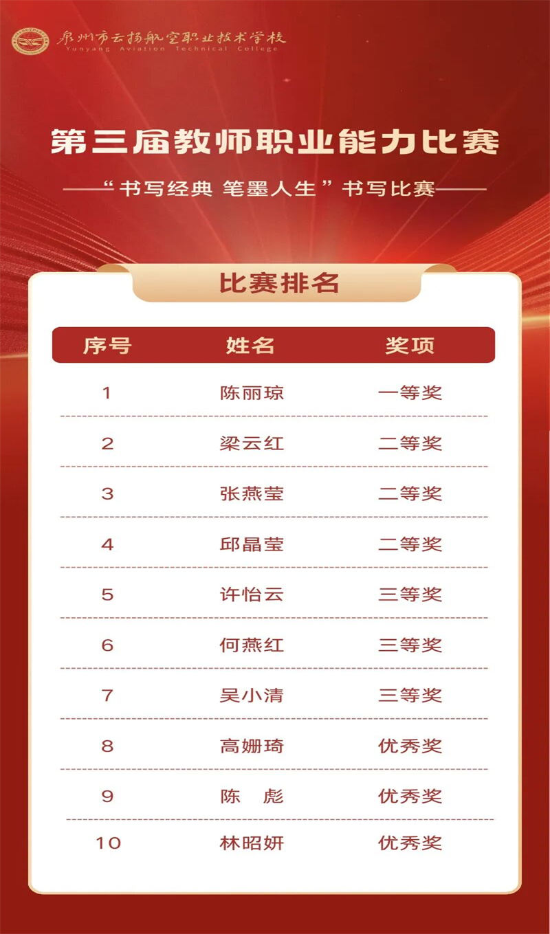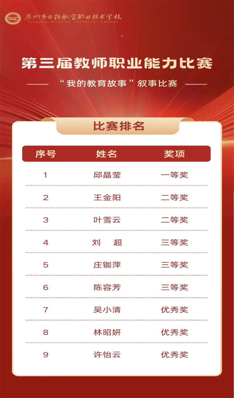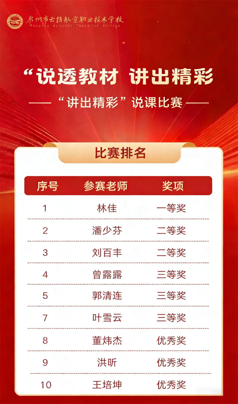 本屆大賽不僅全面檢驗并提升了我校教職工的職業(yè)能力與綜合素養(yǎng),更是一次“以賽促教、以賽促改、以賽促建”的生動實踐,營造了“比學趕超、爭先創(chuàng)優(yōu)”的良好氛圍。我校將持續(xù)深化教師隊伍建設,推動教育教學改革,為職業(yè)教育高質量發(fā)展注入持久動力。