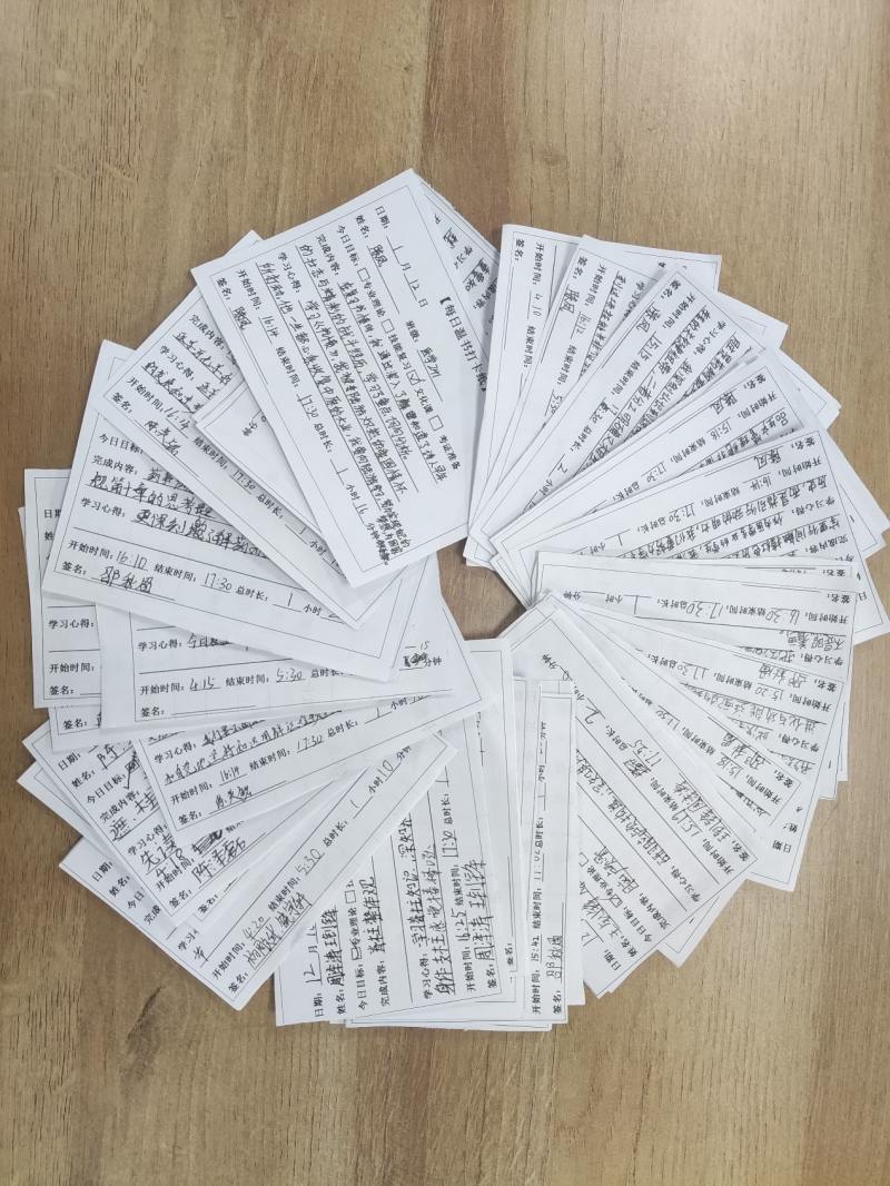 打卡紙上設(shè)置的“心得記錄”欄目,讓每一次突破與反思得以傳遞,實現(xiàn)了“一人心得,眾人受益”的學(xué)習(xí)共享。