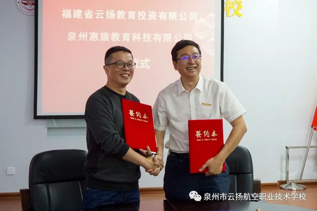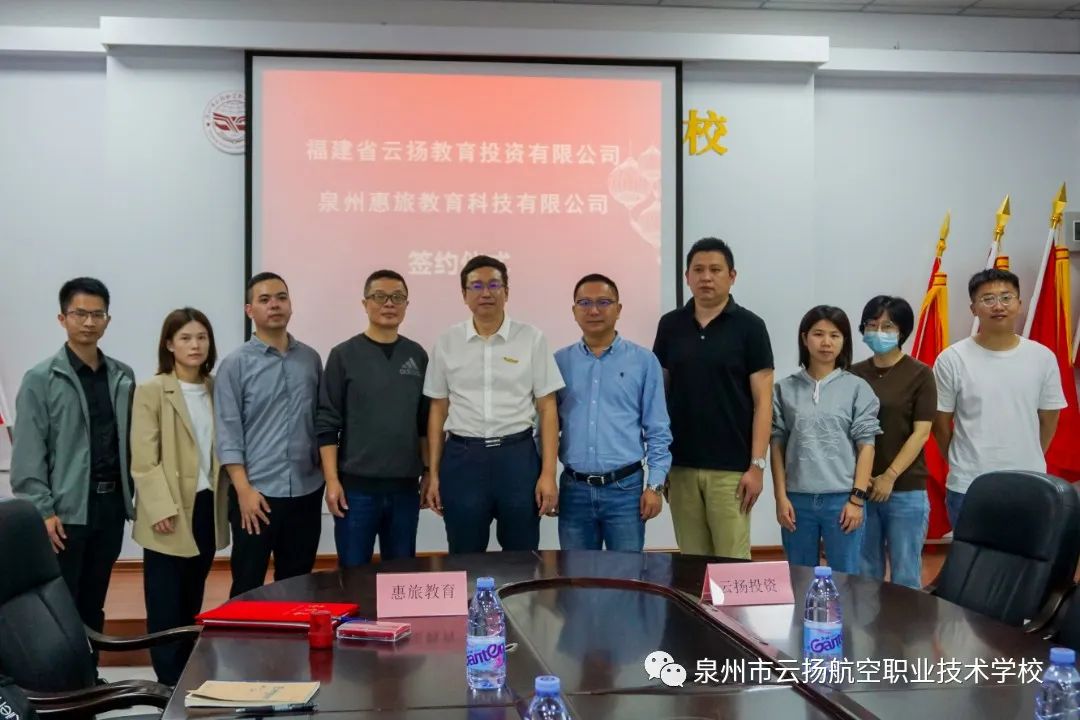 2022年11月1日上午,福建省云揚教育投資有限公司與泉州惠旅教育科技有限公司合作簽約儀式在泉州市云揚航空職業(yè)技術(shù)學(xué)校舉行。泉州市云揚航空職業(yè)技術(shù)學(xué)校郭守強(qiáng)理事長、遲巖校長出席儀式并講話,惠安縣文旅集團(tuán)曾云暉主任及泉州惠旅教育科技有限公司相關(guān)負(fù)責(zé)人出席簽約儀式。