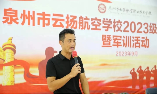 許碧奎副校長宣布泉州市云揚(yáng)航空職業(yè)技術(shù)學(xué)校2023年軍訓(xùn)開營現(xiàn)在開始!